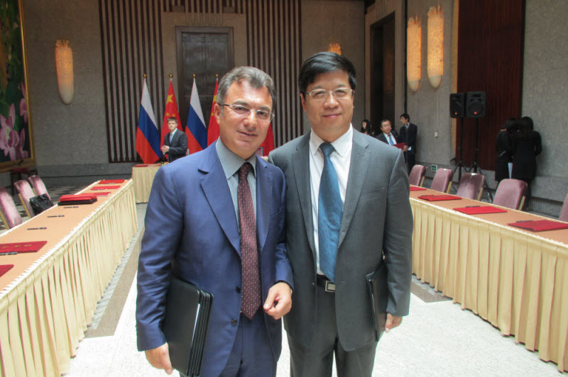 On May 20, Mr. Xu Peitao, GM of Sionma Tianjin was invited to attend meeting between leaders of China and Russia during 4th Summit of the Conference on Interaction and Confidence-Building Measures in Asia (CICA). This session was co-hosted by President Xi Jinping and Russian President Putin. Except for intergovernmental cooperation agreement, under the joint witness of President Xi Jinping and Russian President Putin, Mr. Xu Peitao and Mr. Galchev, Chairman of Russia Europe Cement Company signed 10000t/d cement production line EPS framework contract.