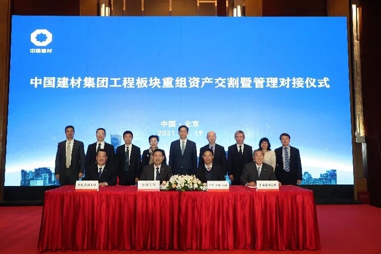 在儀式上,中材國際與中國建材股份、中國建材總院、中國建材工程的代表簽署了資產(chǎn)交割確認(rèn)書。