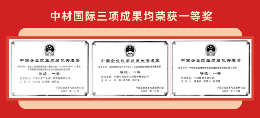 中材國際三項成果榮獲中國企業改革發展優秀成果一等獎