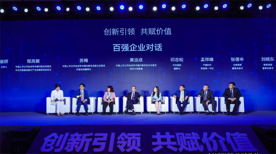 本次會議的圓桌對話環節,中材國際副總裁、董事會秘書、總法律顧問范麗婷作為上市公司代表以如何履行社會責任為主題進行發言,并與寧德時代、隆基綠能、長春高新三家知名上市公司一道,就如何促發展、強信心進行深入討論。